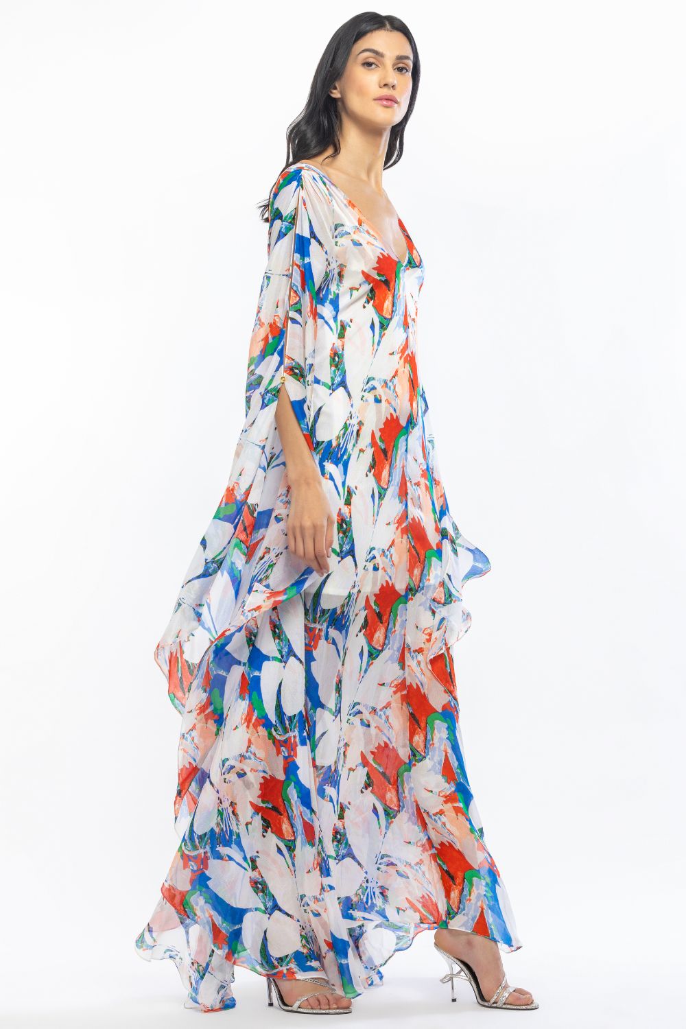 Styling: Step into effortless elegance with the Chiffon Printed Kaftan, a versatile piece that adds a touch of bohemian charm to your beachside outings and leisurely strolls.