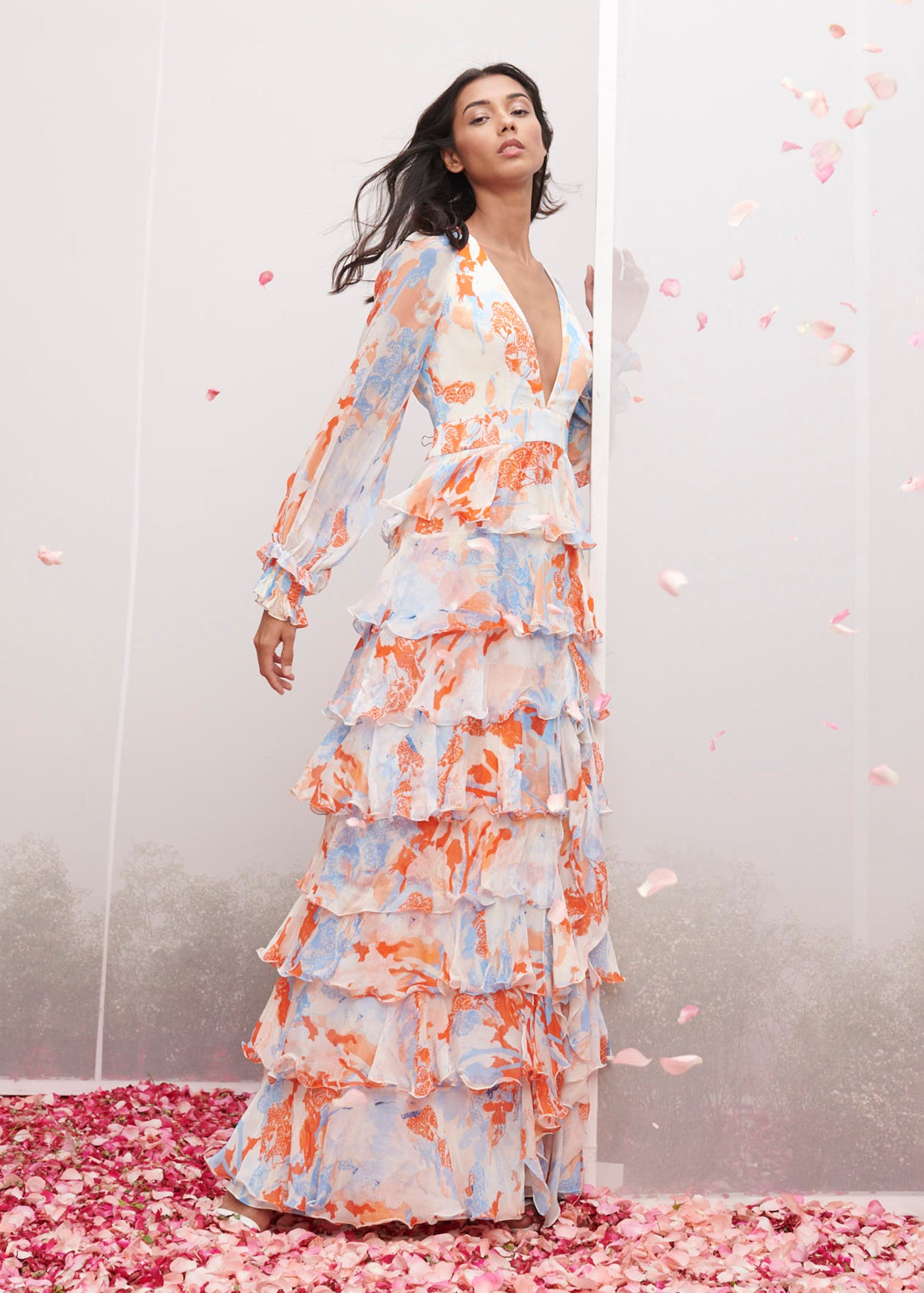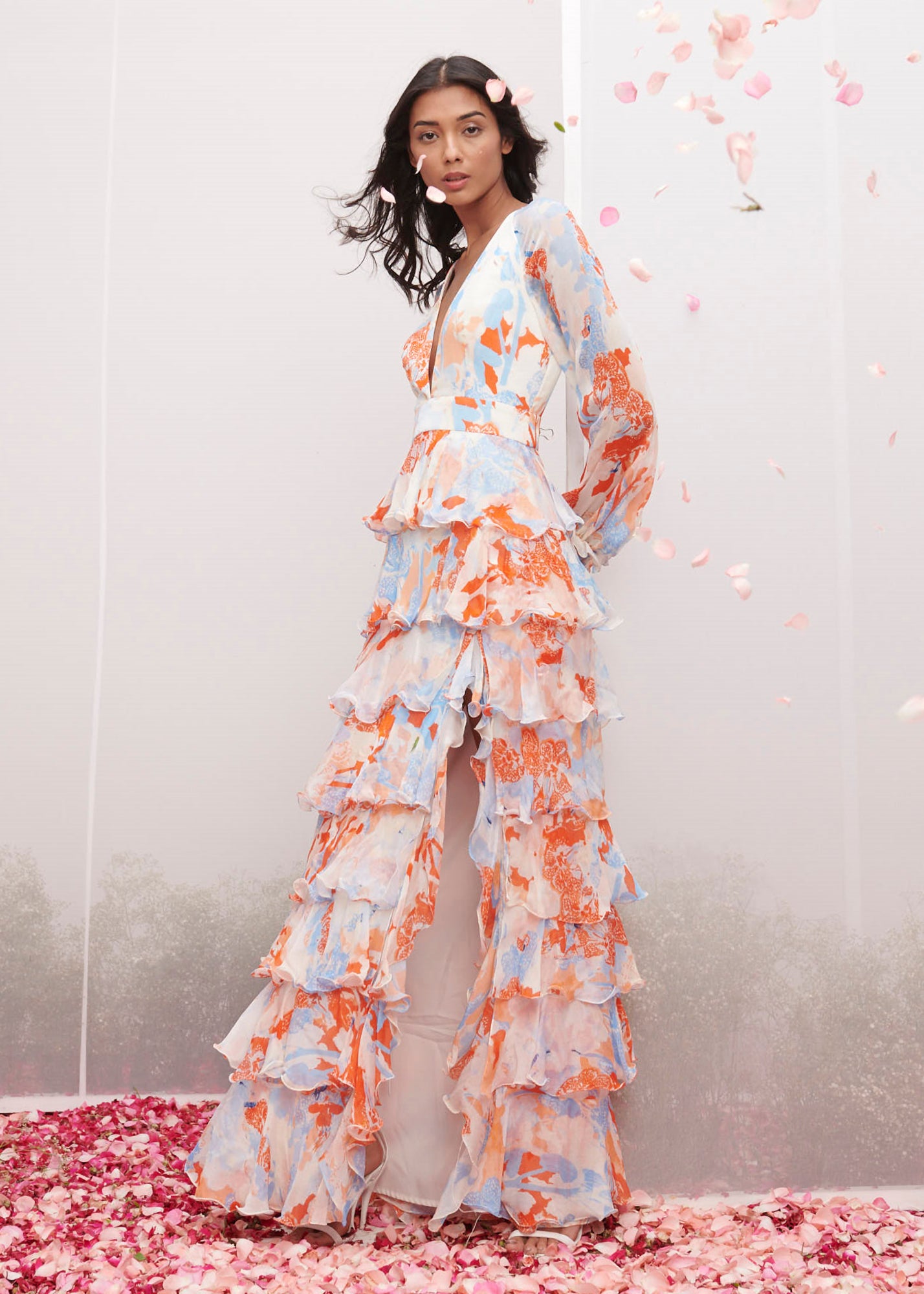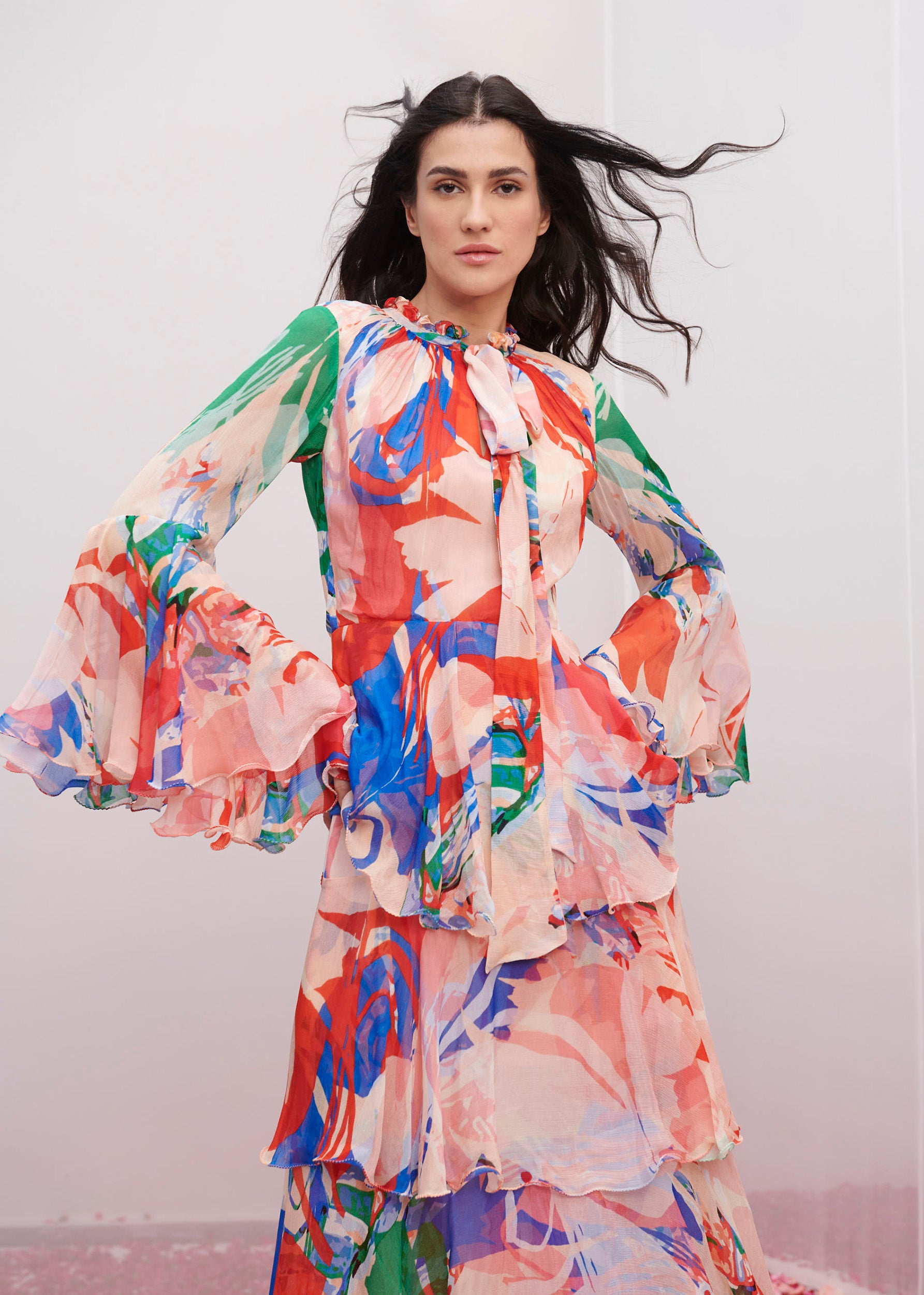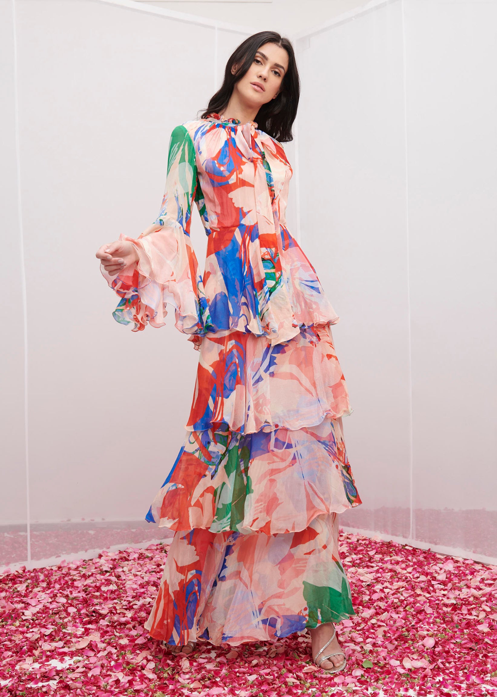 Tropical Printed Sequins Short Wrap Jacket Dress