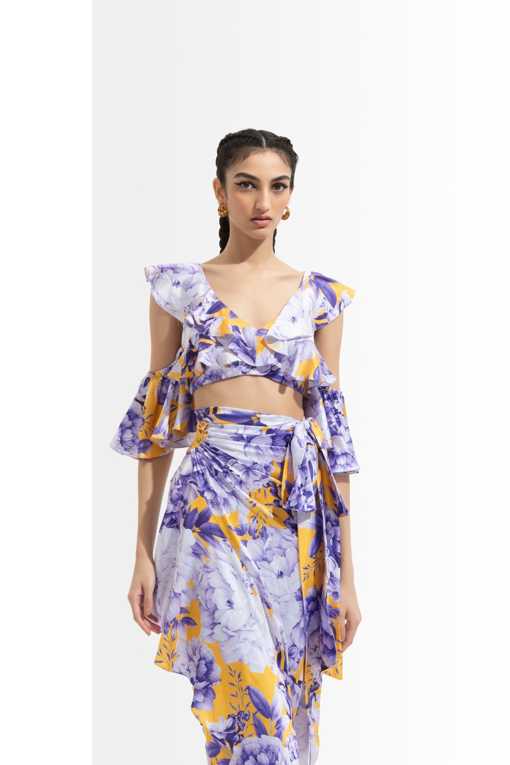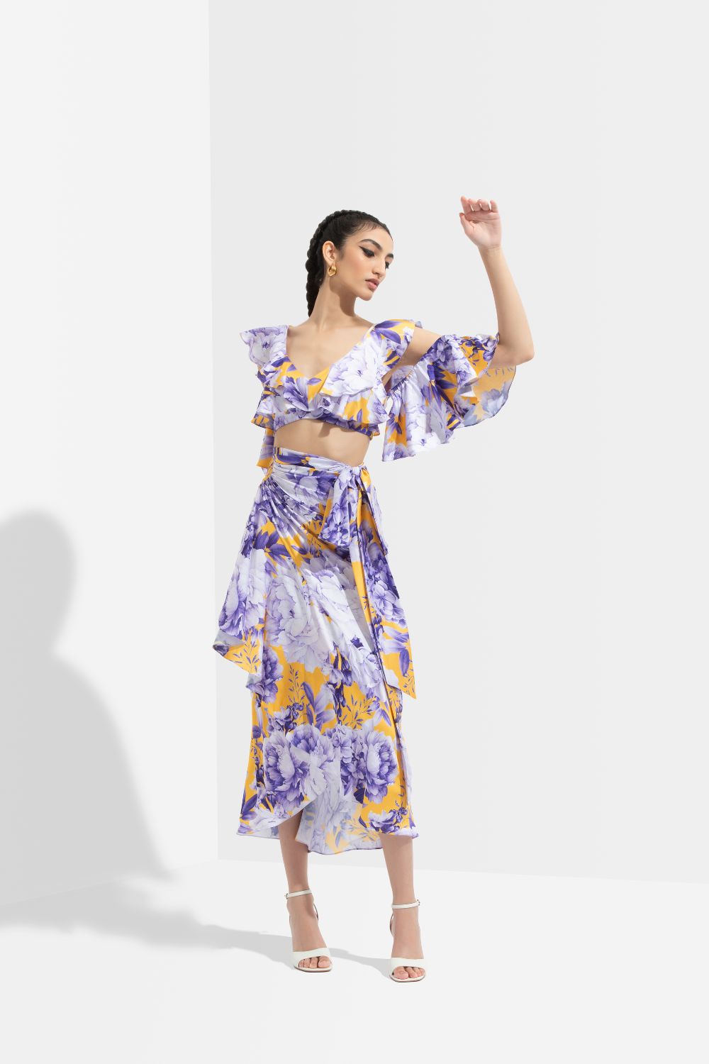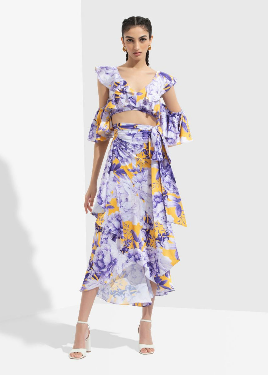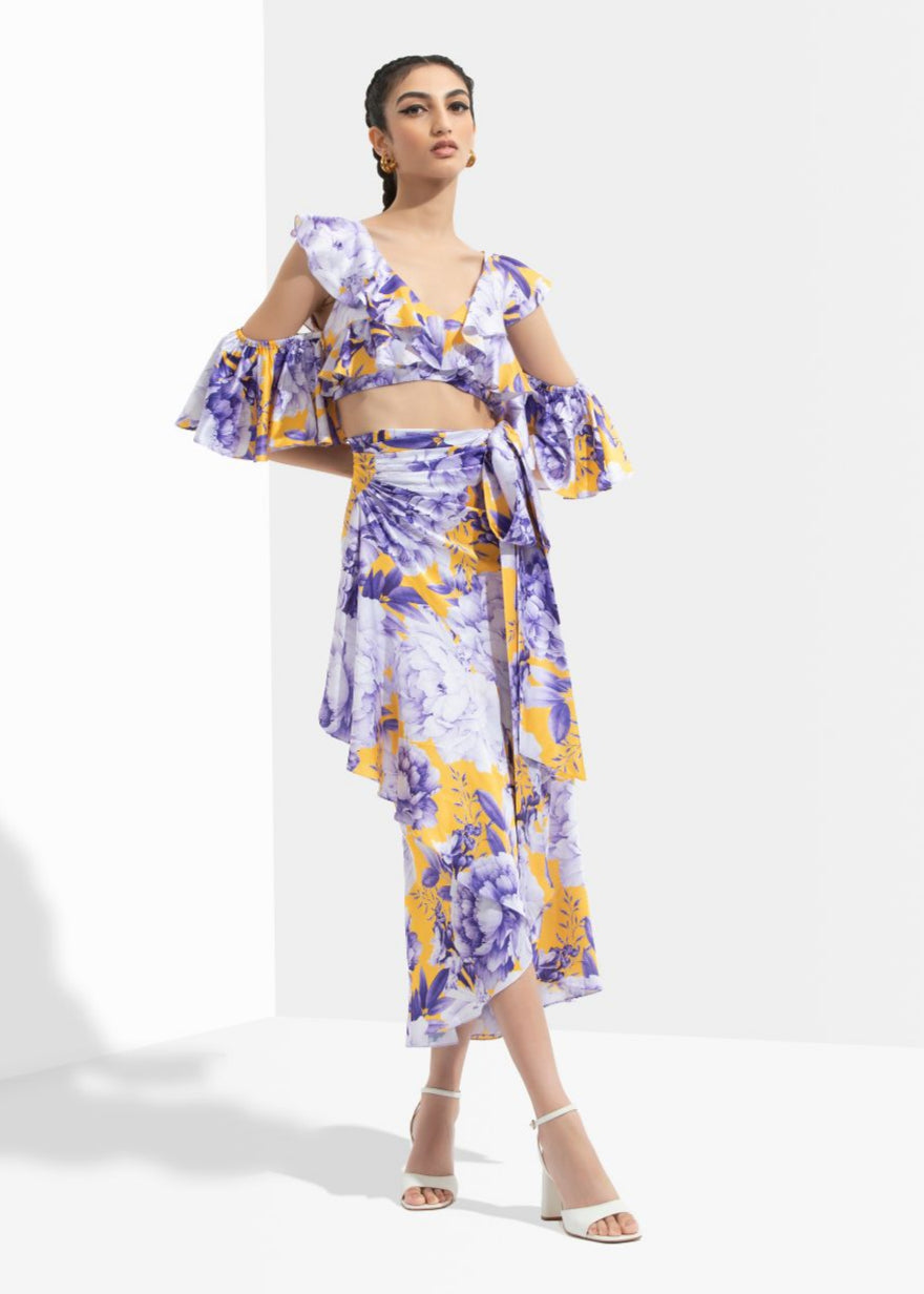 A two-piece ensemble that seamlessly blends chic and sophistication. Crafted from luxurious Satin in a captivating printed design, this set is a true testament to modern elegance.
