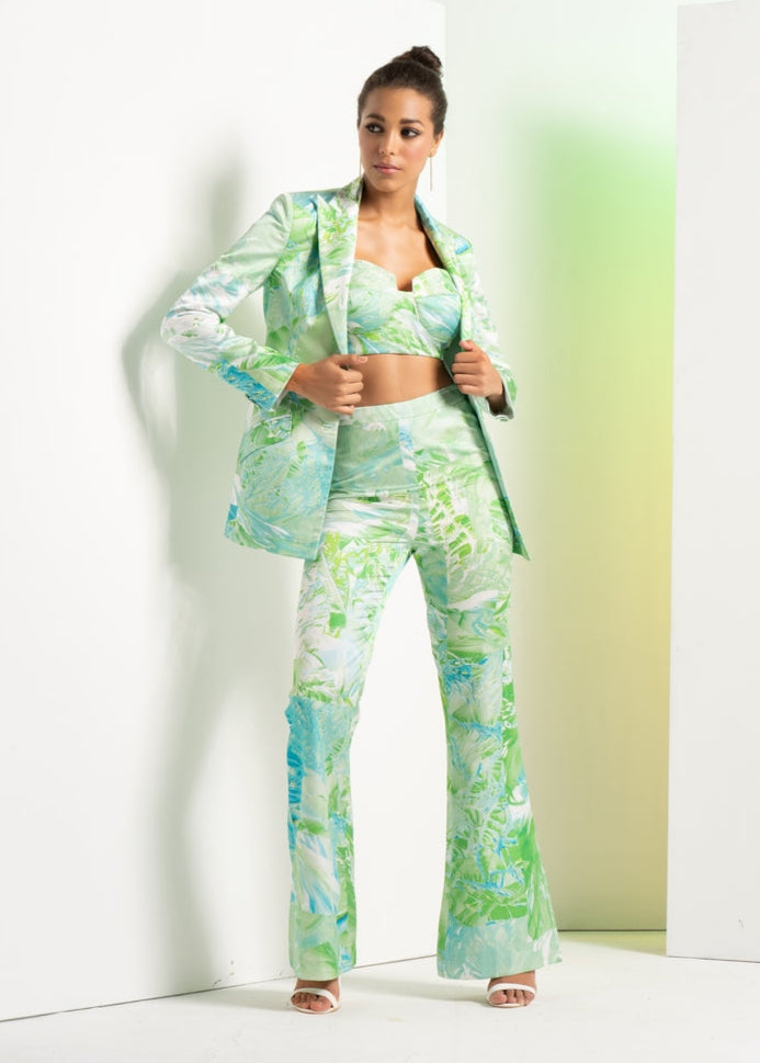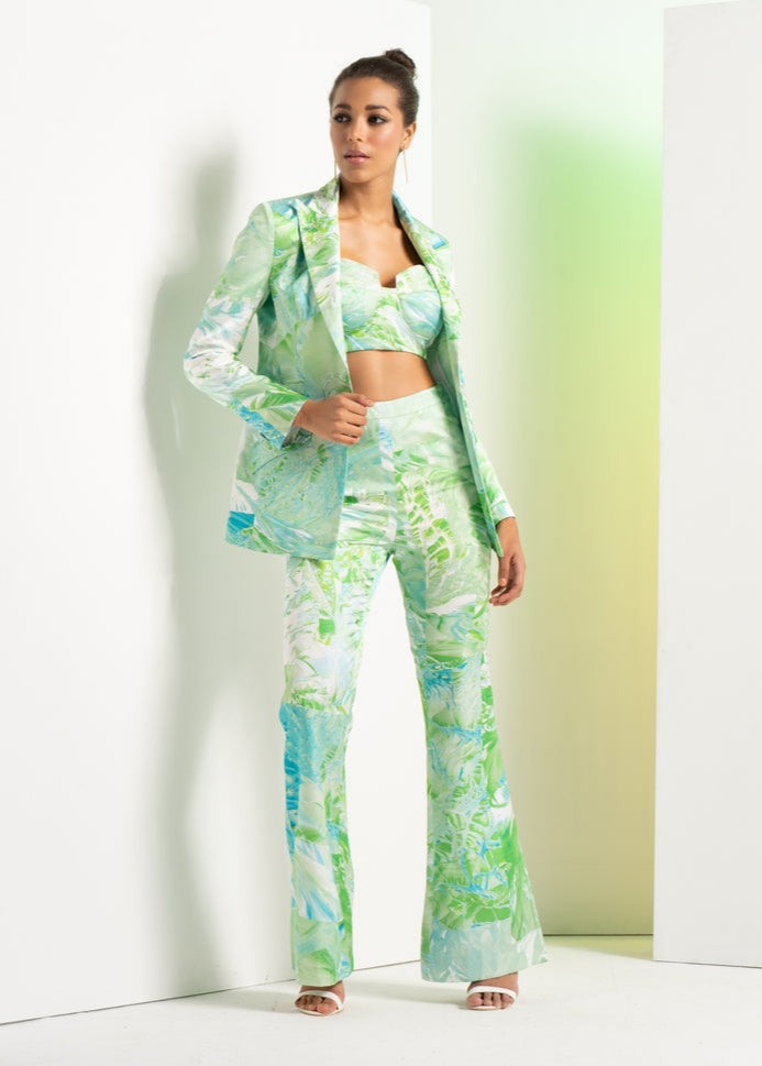 Green Raw Crystal Pant Suit Set