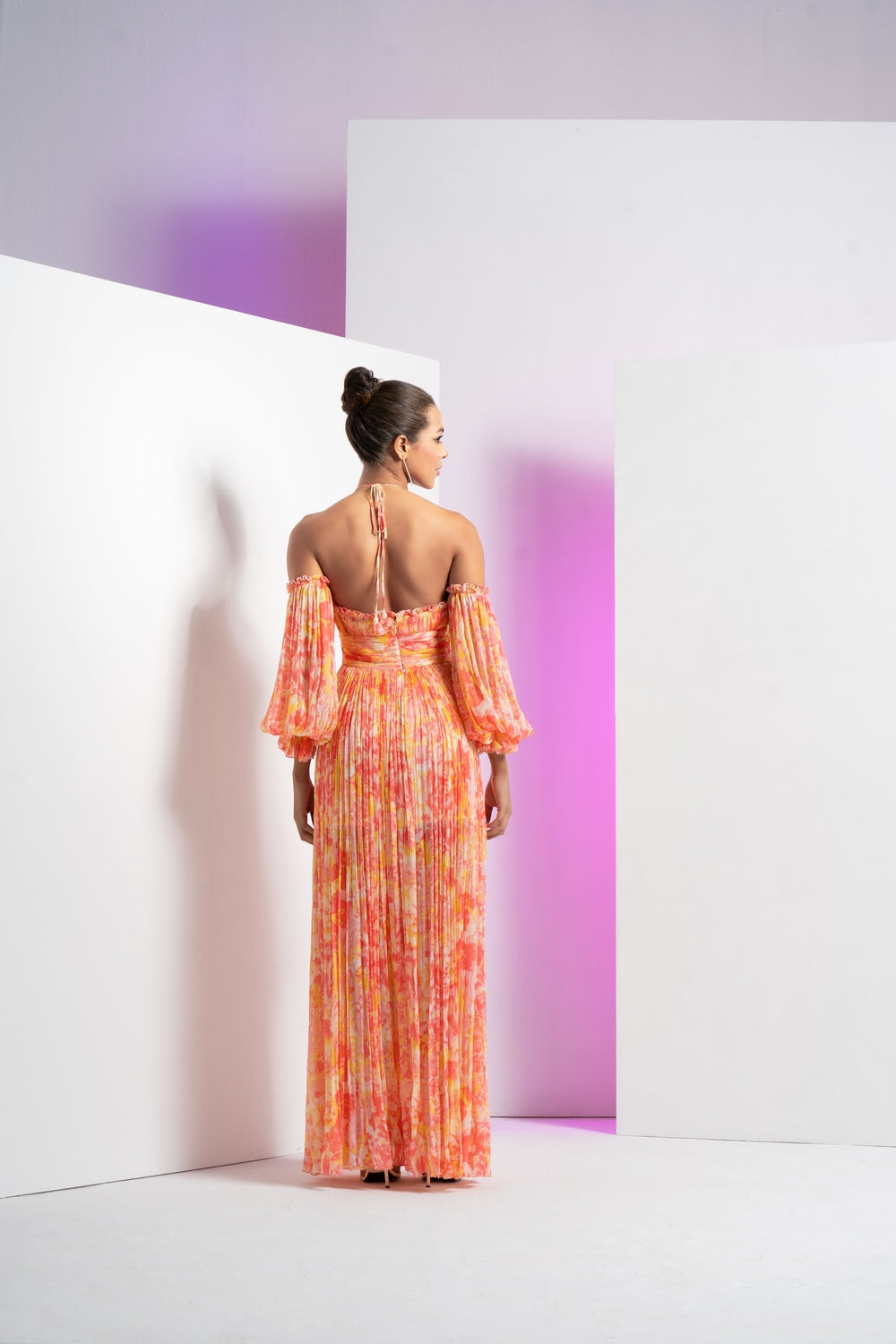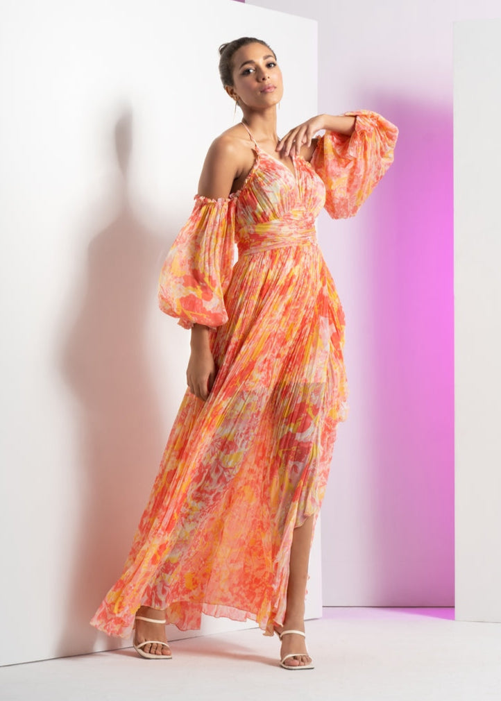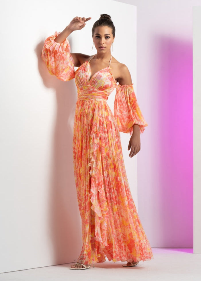 Styling: Perfect for a night out or a glamorous soirée, the red pansy daisy long halter neck dress is your go-to choice for making a stylish impression with its vibrant floral design and chic halter neck, ensuring you stand out with poise and style.
