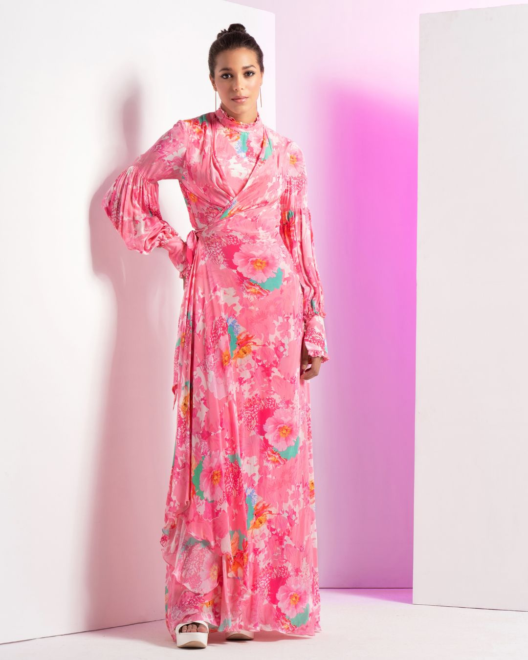 Lush Pink Wrap Maxi Dress