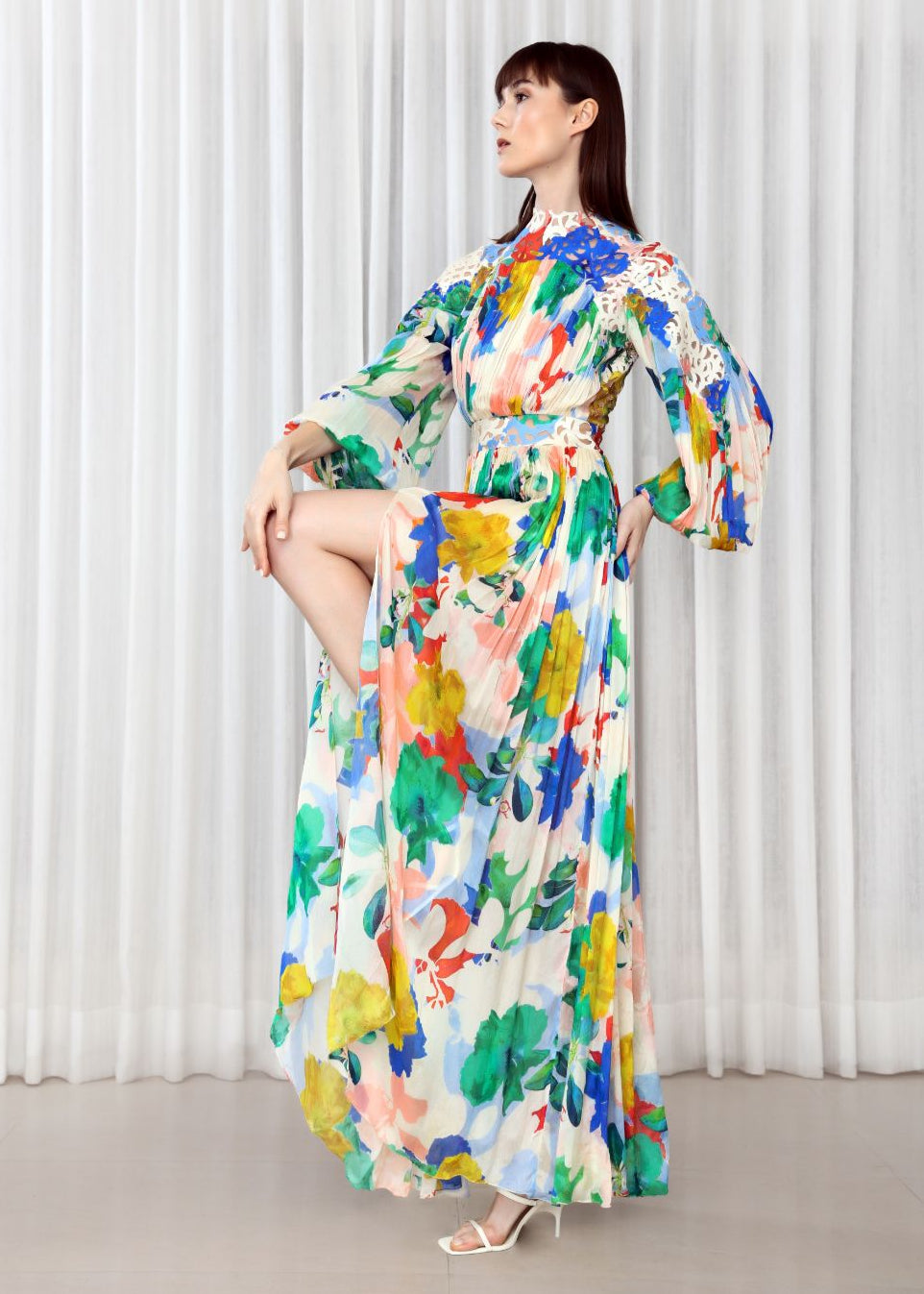 Styling: Elevate your style with the Hibiscus Printed Dress featuring intricate laser cuts, a versatile choice for achieving a chic and unique look suitable for a variety of occasions.