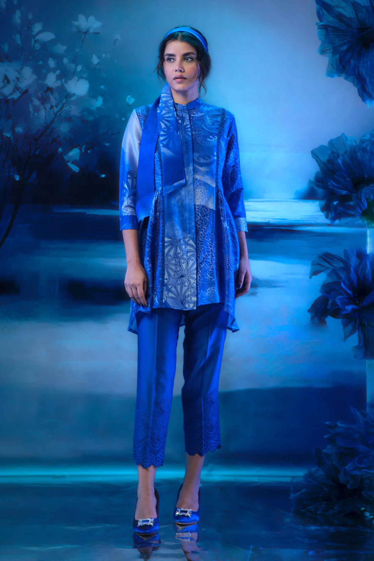 Indigo Co-ord Ensemble with Cutwork Pant Scarf