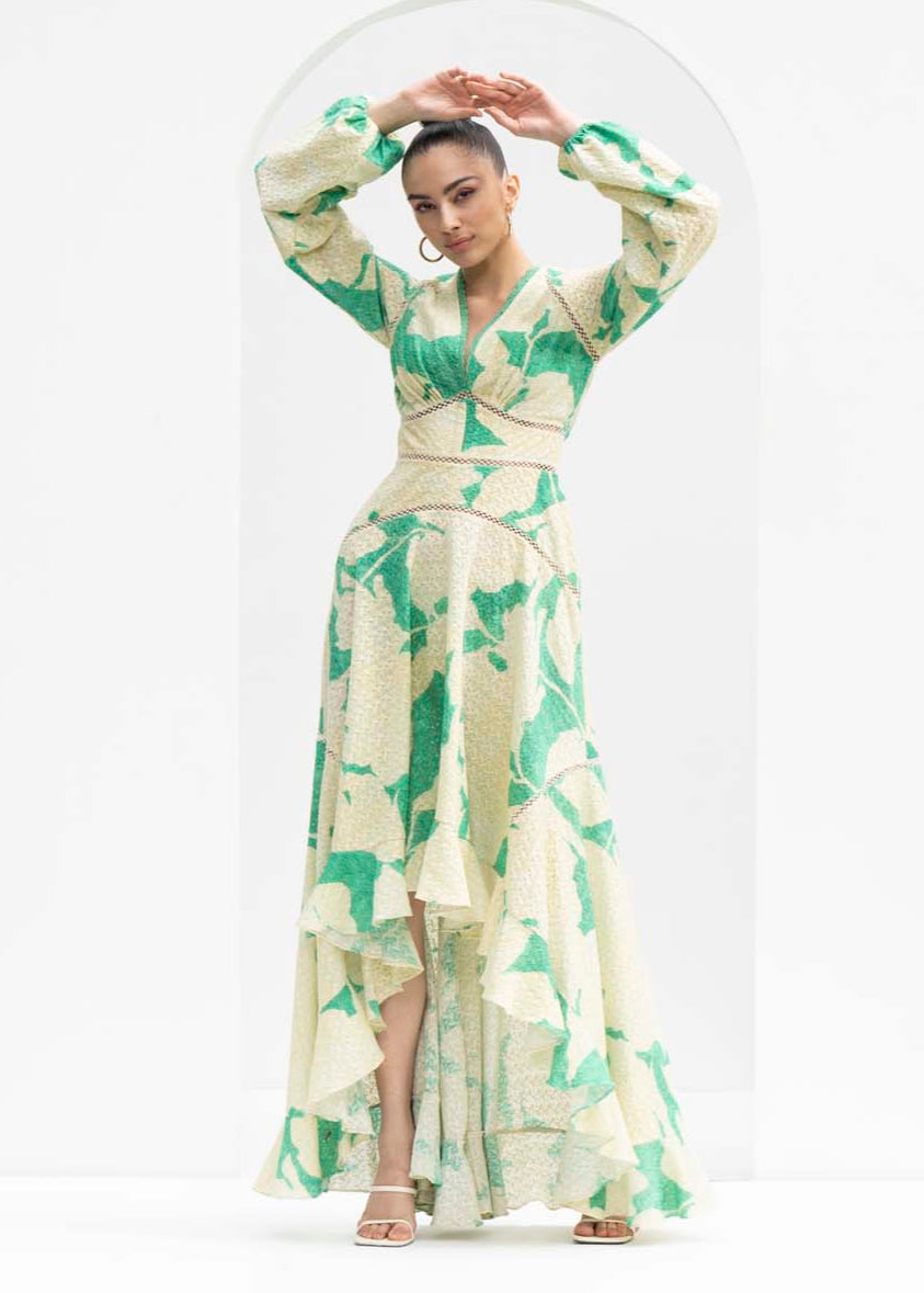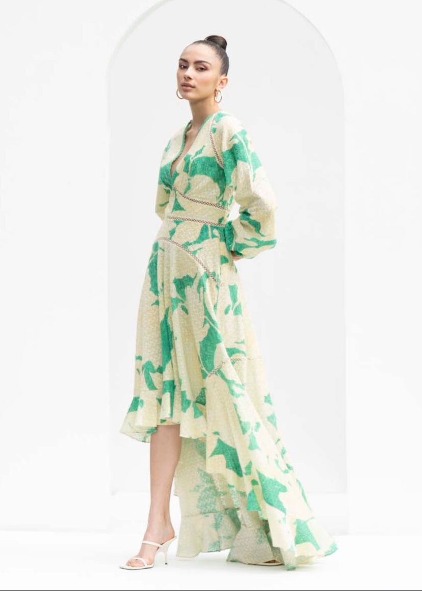 Styling: Make a glamorous statement with the Bling Texture Chantley Printed High-Low Dress, adorned with delicate lace detailing. This dress is perfect for upscale events and special occasions, ensuring you dazzle with sophistication and style.