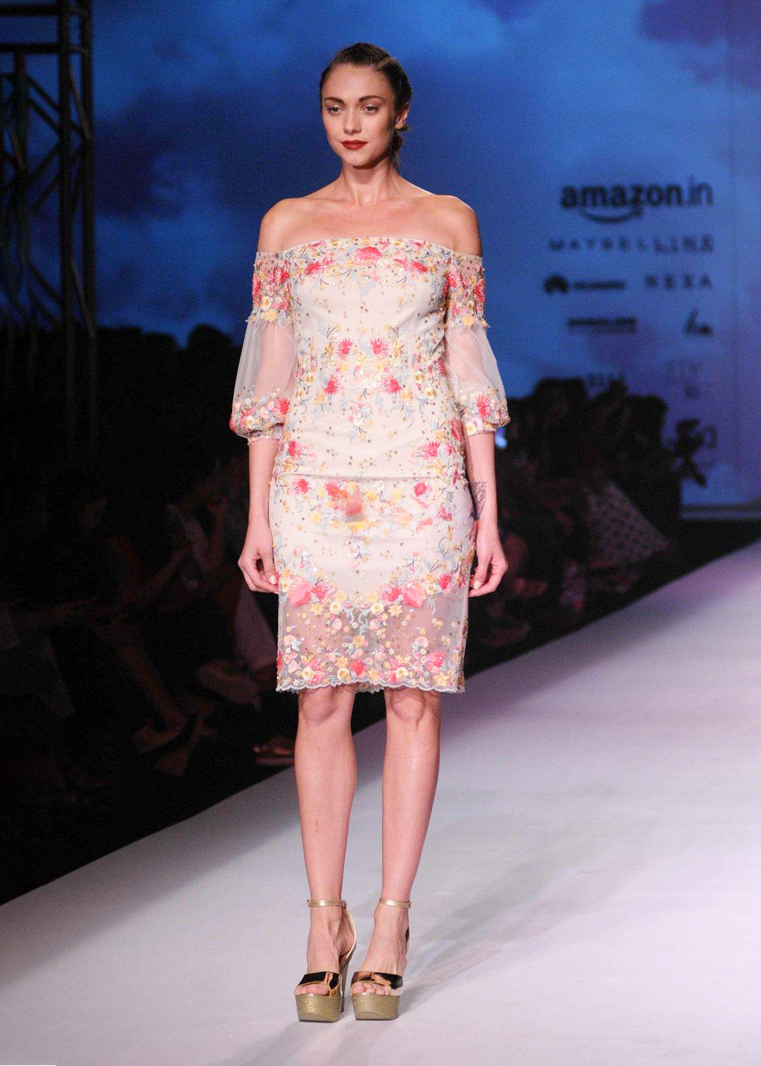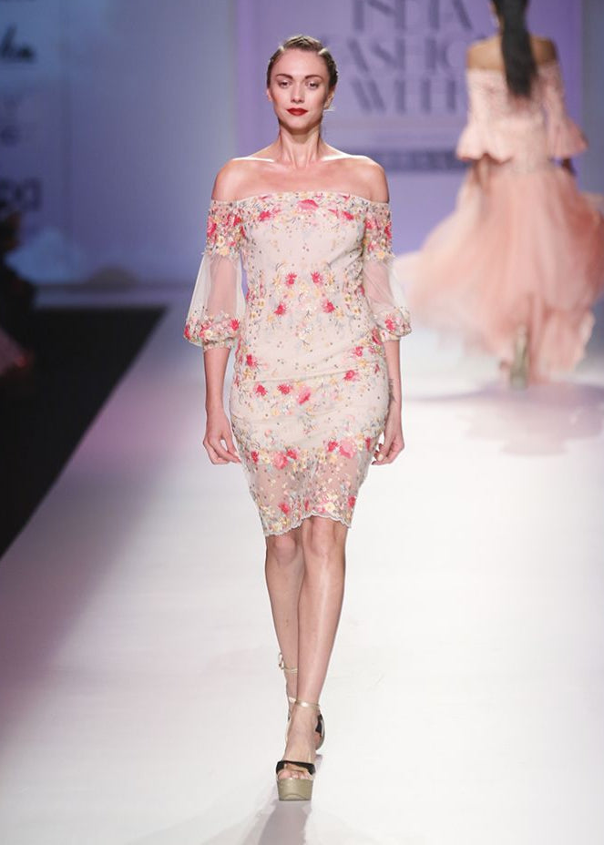 Delicate hand-embroidered pink blossoms trail across the fabric, adding a romantic touch of color and intricate texture. Effortlessly feminine yet polished, it’s the perfect statement piece for garden brunches, intimate celebrations, or any occasion that calls for quiet luxury and timeless grace.