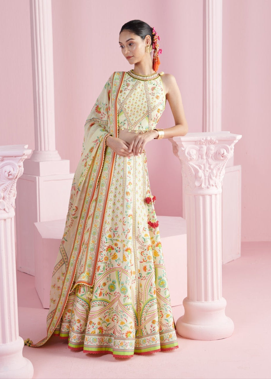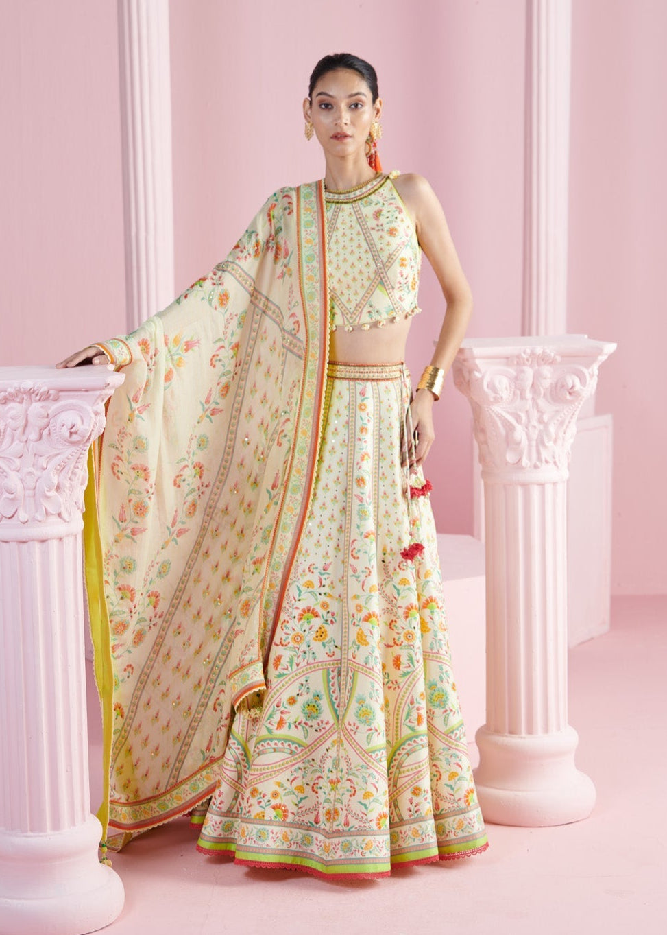 Lemon Blossom Top with Lehenga and Printed Dupatta