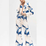 Mystic blue texture printed Foma jacket set with dazzling hand-embroidered tassels at the hem.