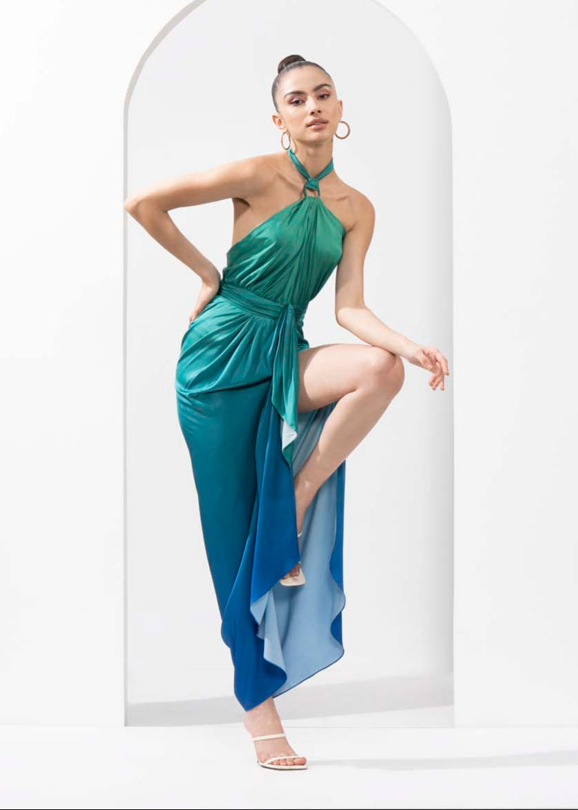 Mystic Green Mesh Lurex Printed Co-ord Set
