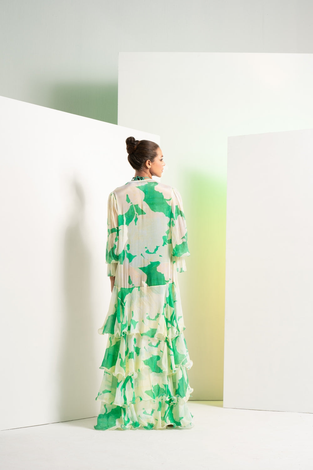 Green Bodysuit With Tiered Cape