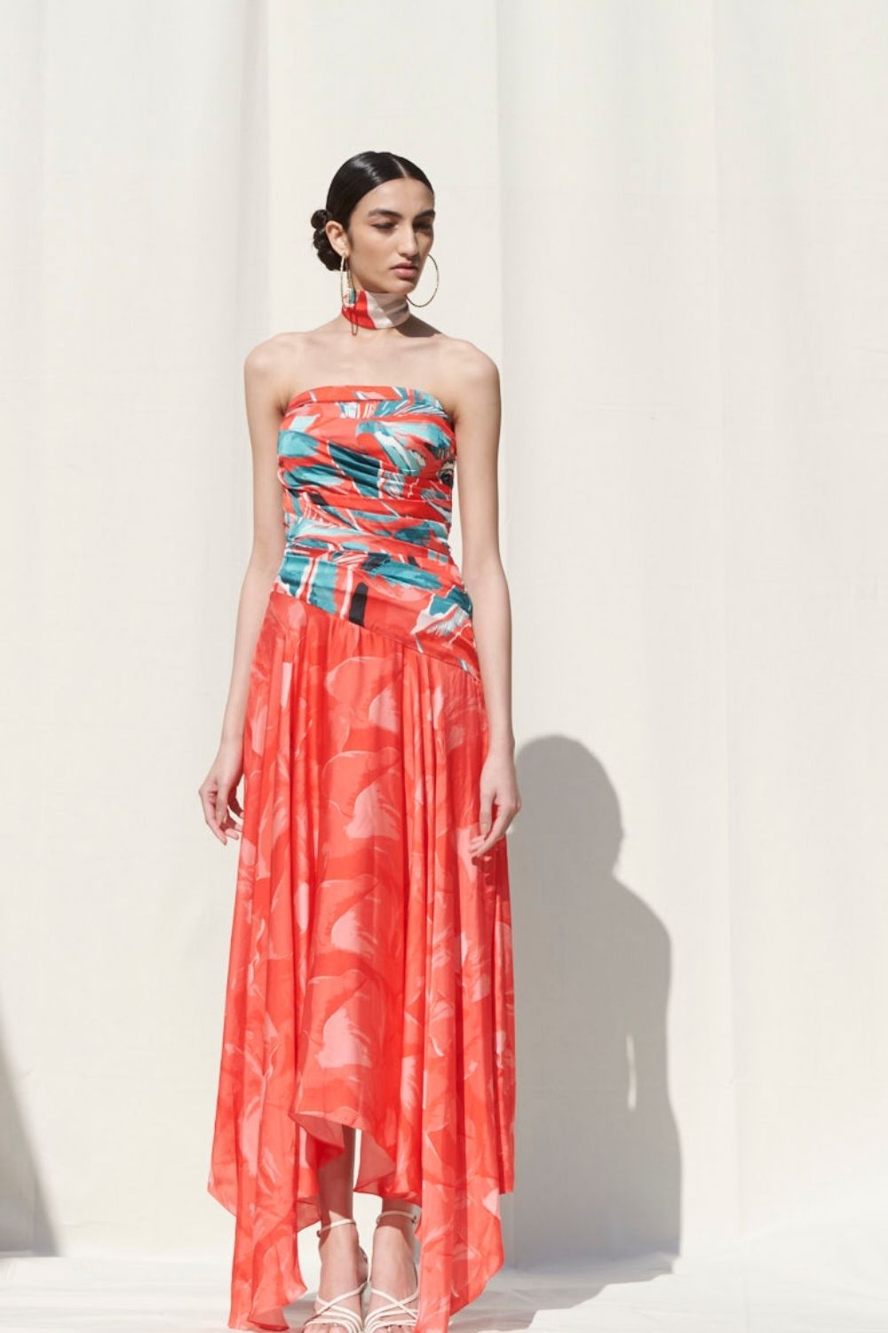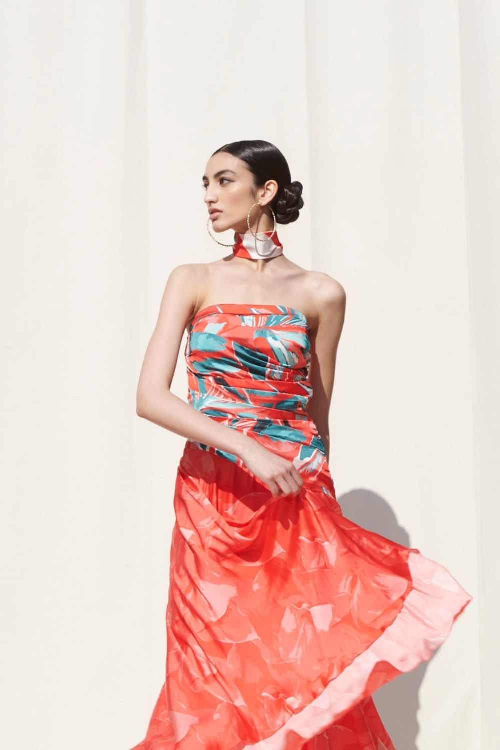 This dress is designed in a Regular Fit, ensuring a comfortable and flattering silhouette that fits true to size. Our model stands at a height of 5'10" and is wearing size S, showcasing the stunning appeal of this dress on any figure.