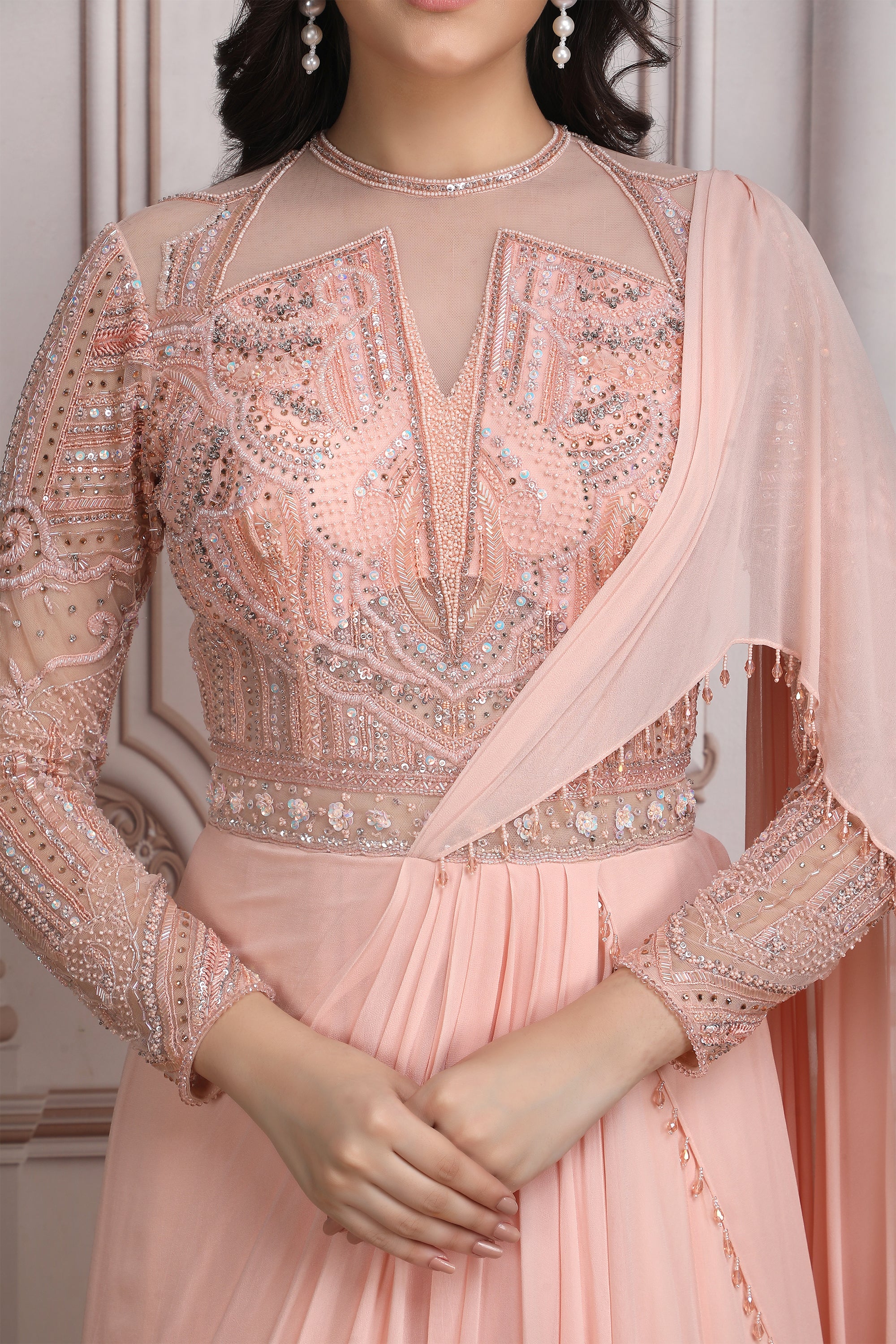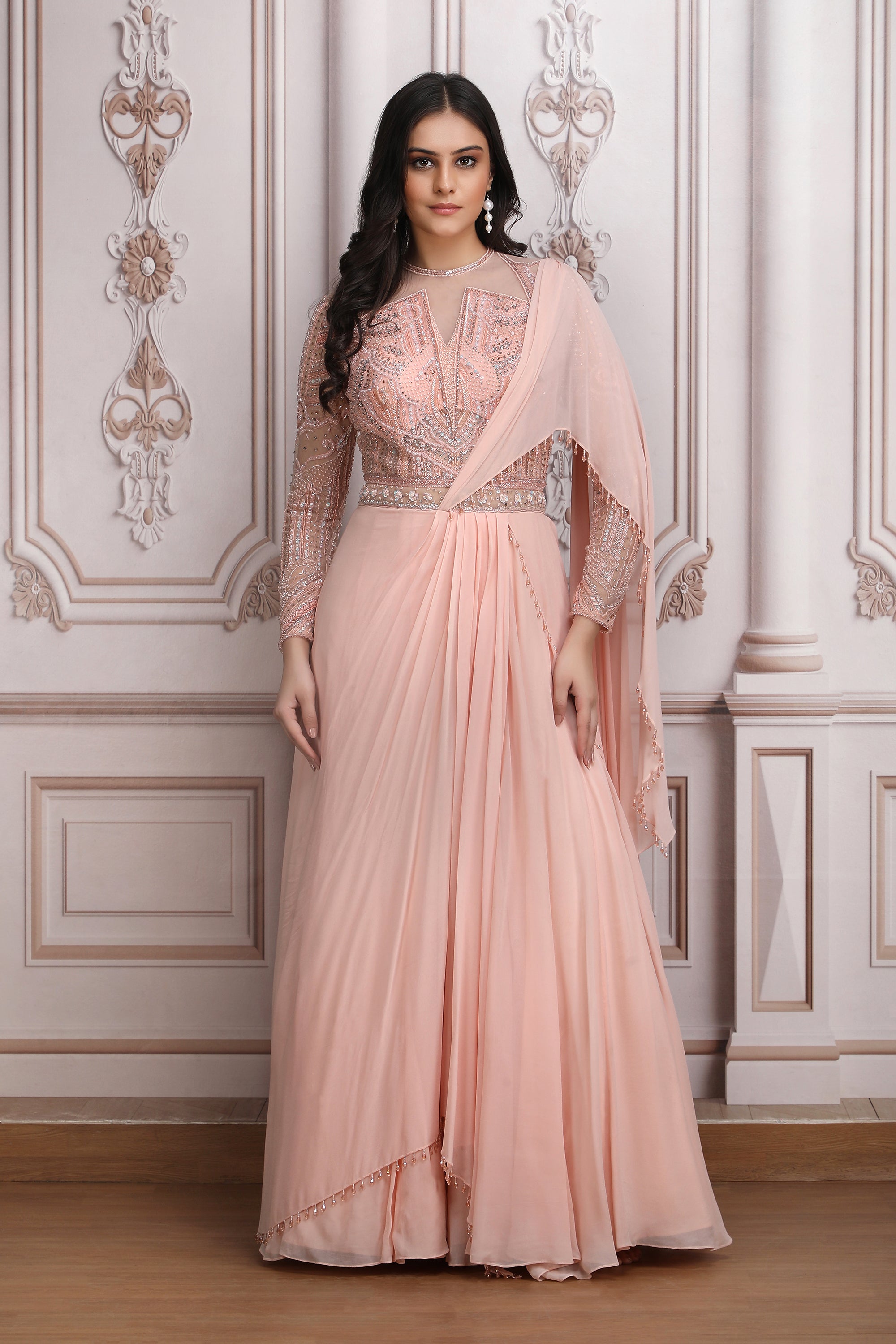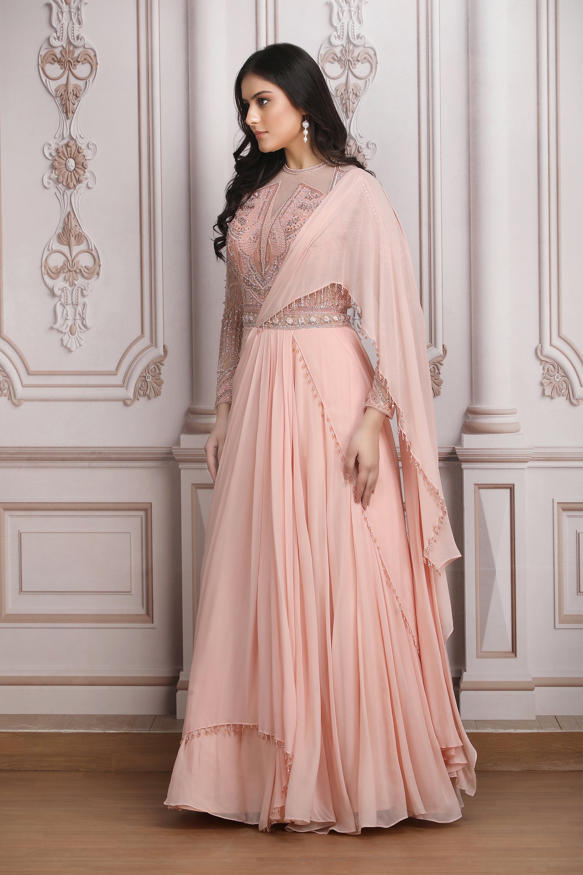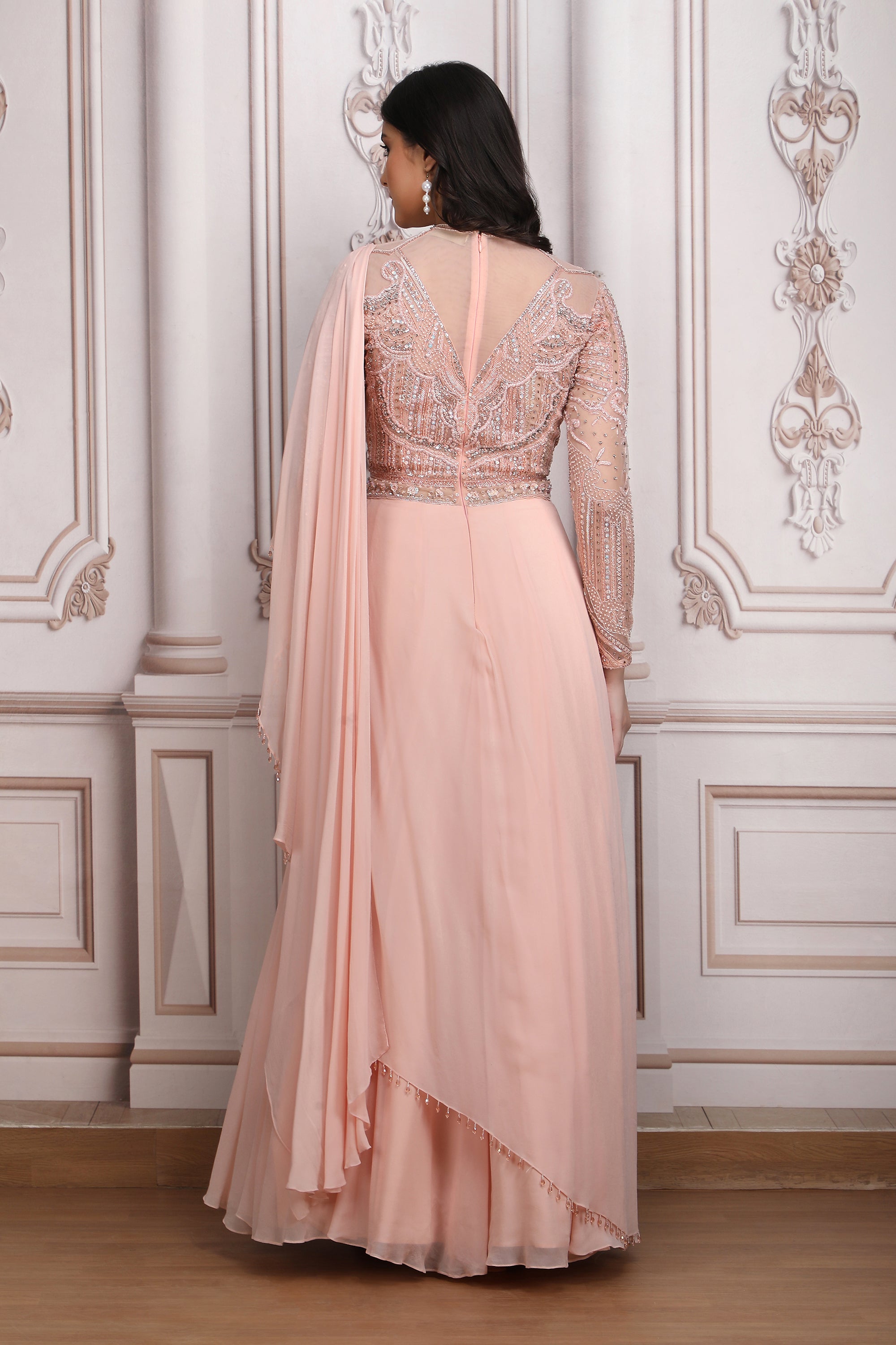 Blush Pink Gown With Heavy Embroidered Upper Bodice