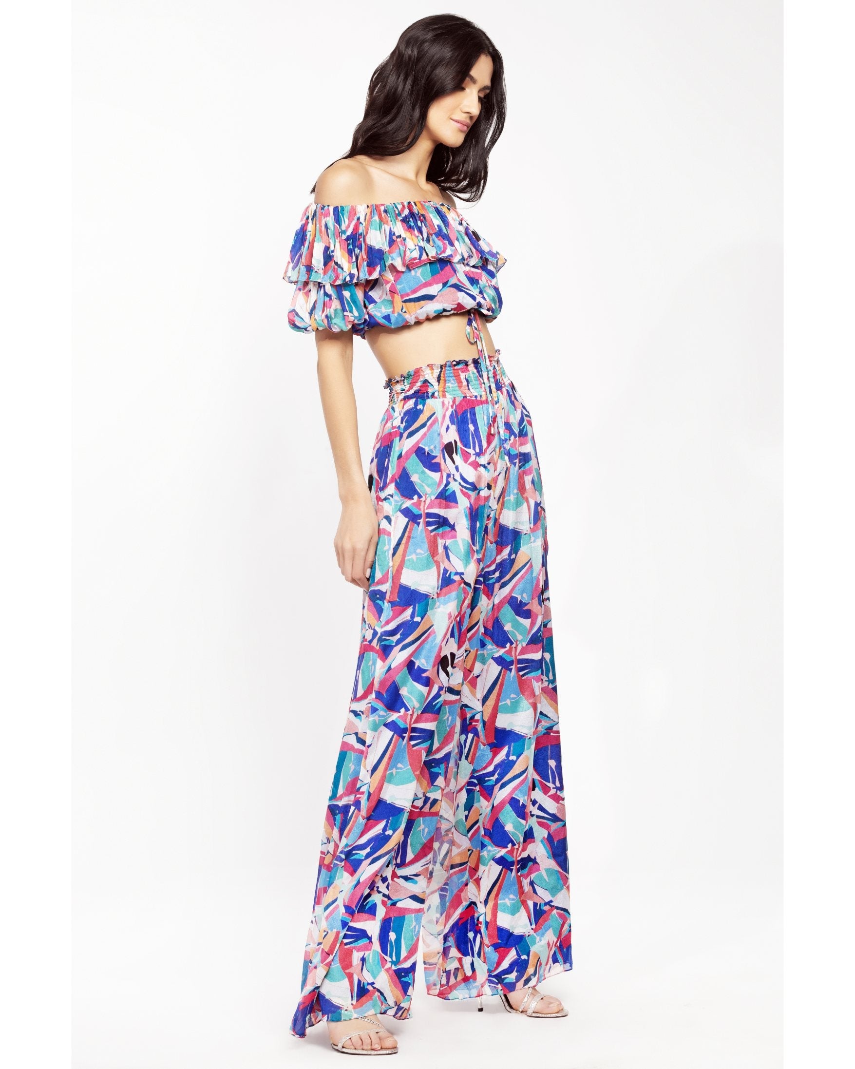 Styling: Effortlessly chic and comfortable, the Chiffon Printed Off-Shoulder Top paired with Smocking Pants is a versatile ensemble perfect for achieving a stylish and relaxed look, whether you're strolling through the city or enjoying a leisurely brunch with friends.