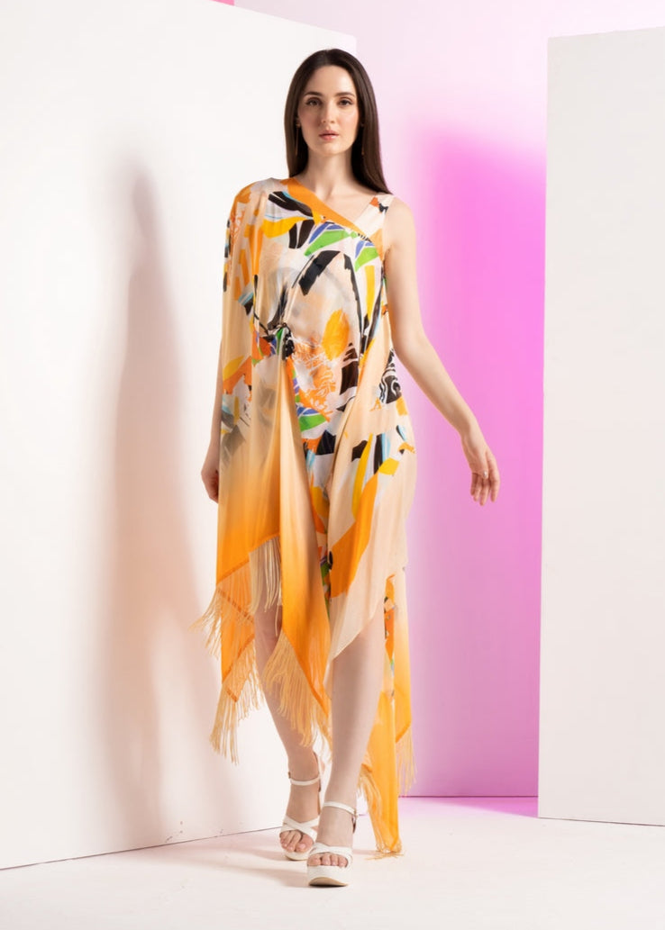 The Chrome Cornhusk bodysuit with metal ring detail is a bold and contemporary piece that combines unique design elements with a touch of sophistication. The chrome color exudes modernity and an industrial edge, while the metal ring detail adds a touch of avant-garde fashion. Along with it, the cape detailed with fringe lace introduces a dynamic and textural element, creating an ensemble that's as eye-catching as it is fashionable. This bodysuit is a statement of modern design's creative brilliance, perfect for those who want to make a memorable and distinctive fashion statement. Whether for a special event or a night out, it exudes both edginess and a hint of luxury.