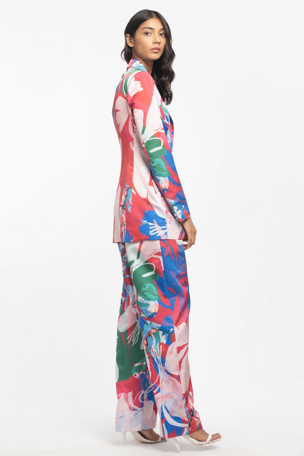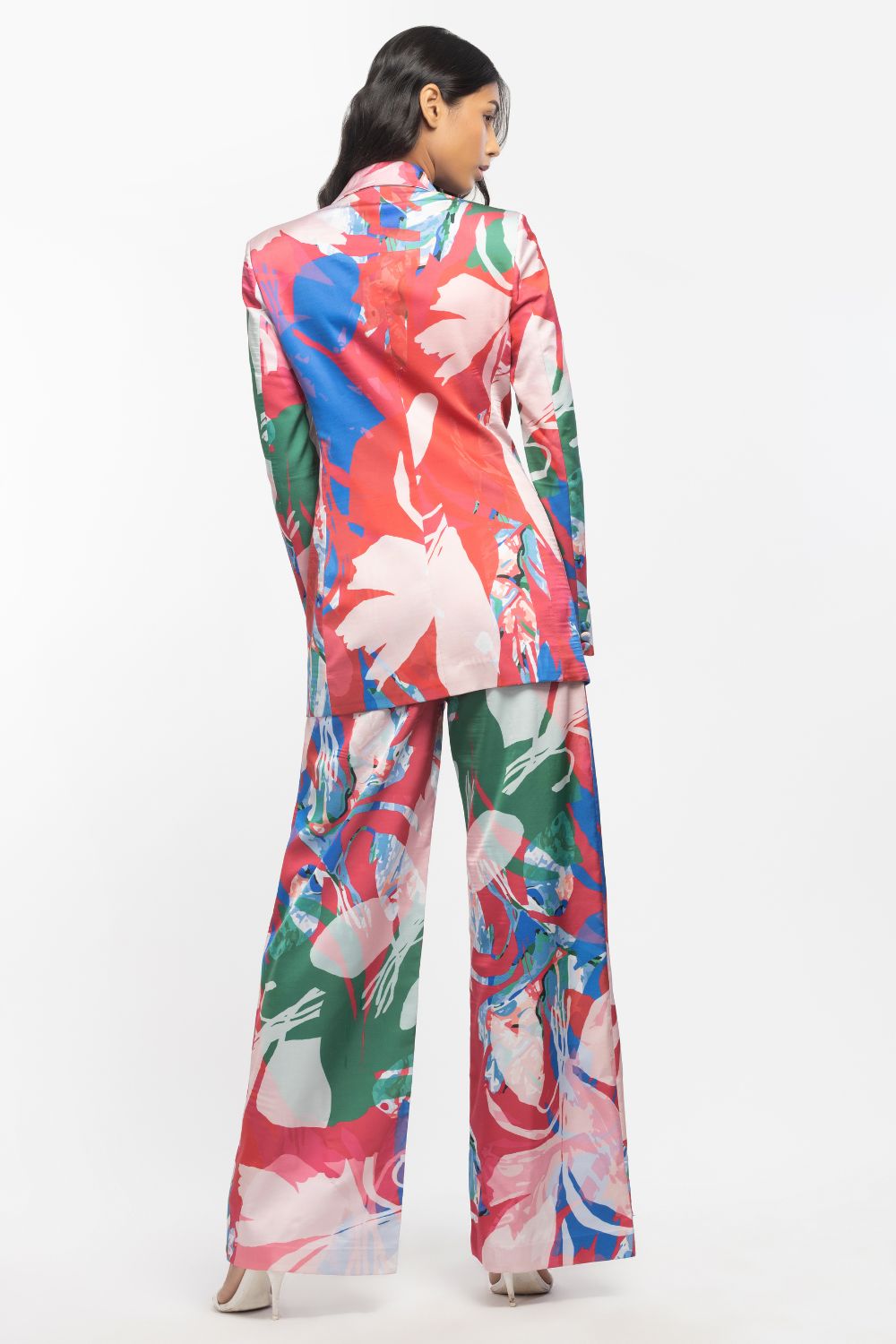 Styling: Elevate your ensemble game with this Satin Printed Jacket and Pant Set, a versatile choice that transitions seamlessly from daytime sophistication to evening chic, promising you a bold and confident look on any occasion.